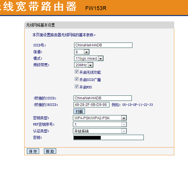 然后连接到路由器上,我用的是 FAST FW153R,还有个 TP-Link 的,但是太老了,WDS 设置不是很方便,所以就用 FAST 的这个来试验。